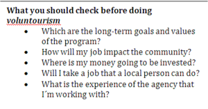 - “Why Voluntourism CAN be Positive“, by Rachel Northover on GoAbroad.com